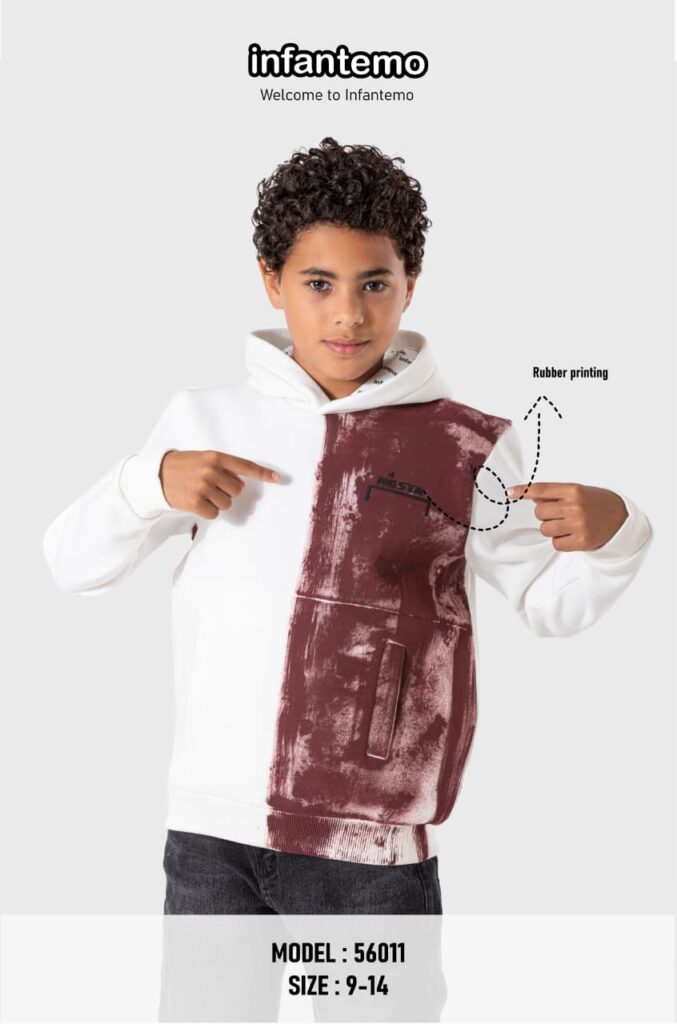طقم شتوي أولادي قطعتين – هودي مع بنطال بطبعة جانبية ملونة