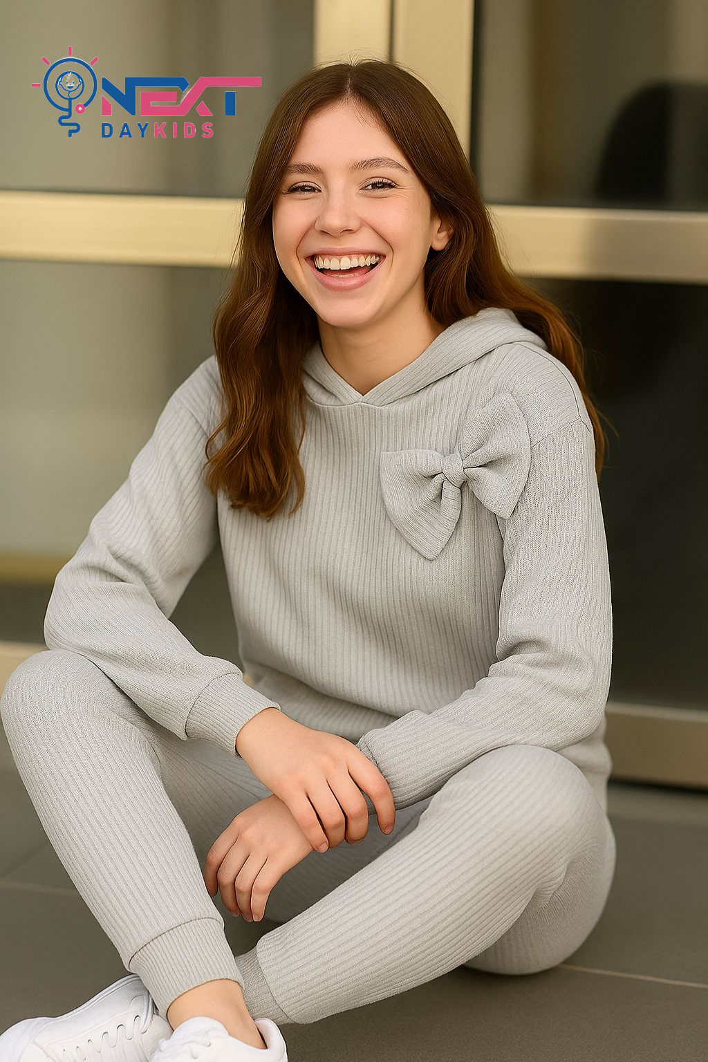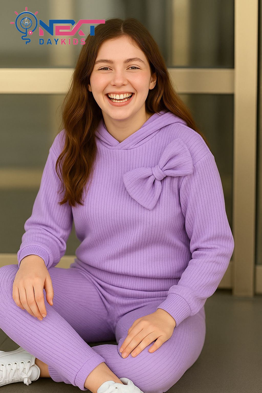 طقم بناتي مضلع قطعتين مع فيونكة أنيقة: تألقي براحة لا تضاهى مع هذا الطقم البناتي الأنيق المصنوع من نسيج مضلع ناعم باللون البنفسجي الجذاب. يتميز التصميم بهودي عصري مزين بفيونكة جانبية كبيرة تضفي لمسة من الأنوثة والتميز، مع بنطلون متناسق بخصر مرن يوفر ملاءمة مثالية. هذا الطقم هو الخيار المثالي لإطلالة منزلية راقية أو للخروجات الكاجوال السريعة التي تجمع بين البساطة والشياكة.