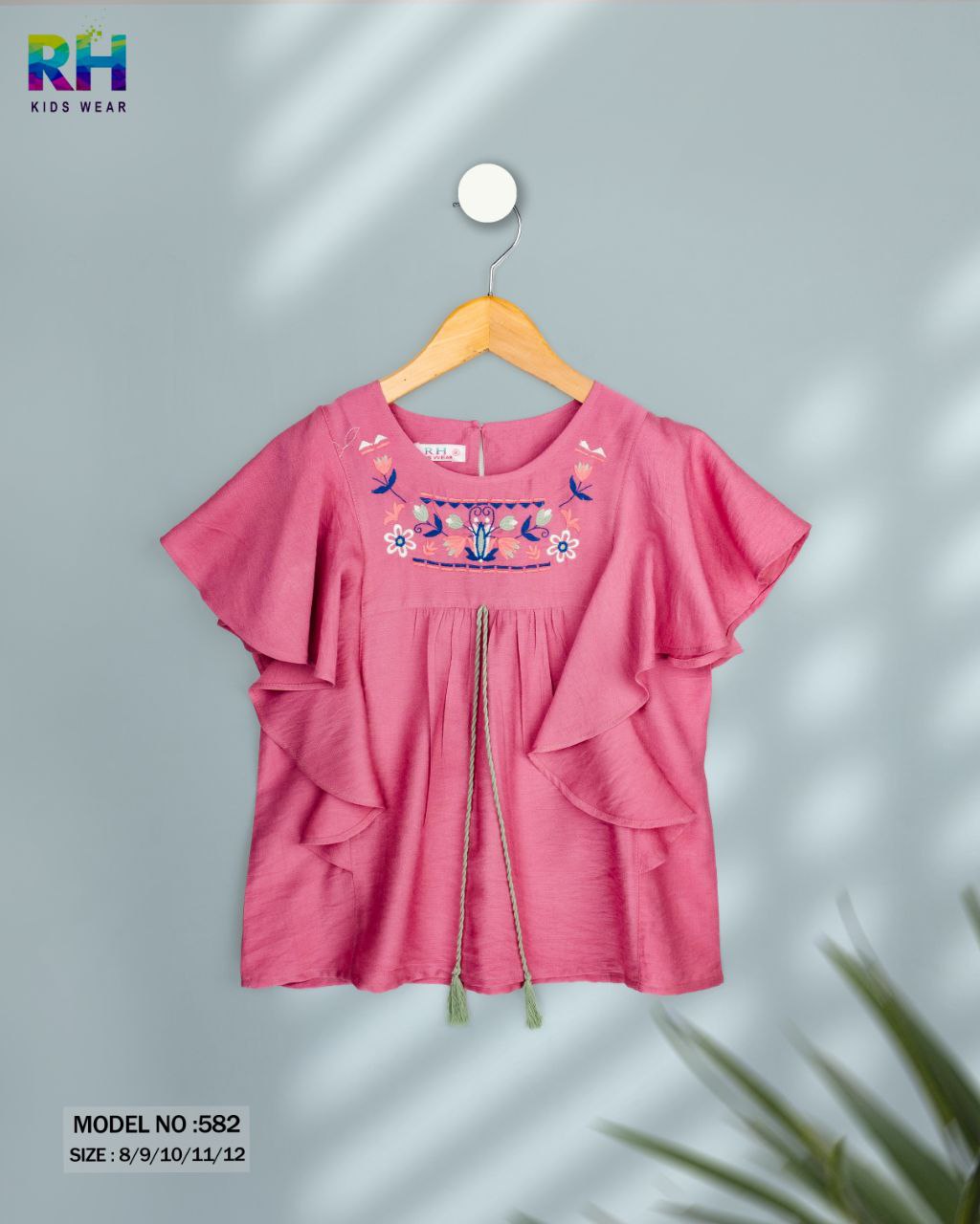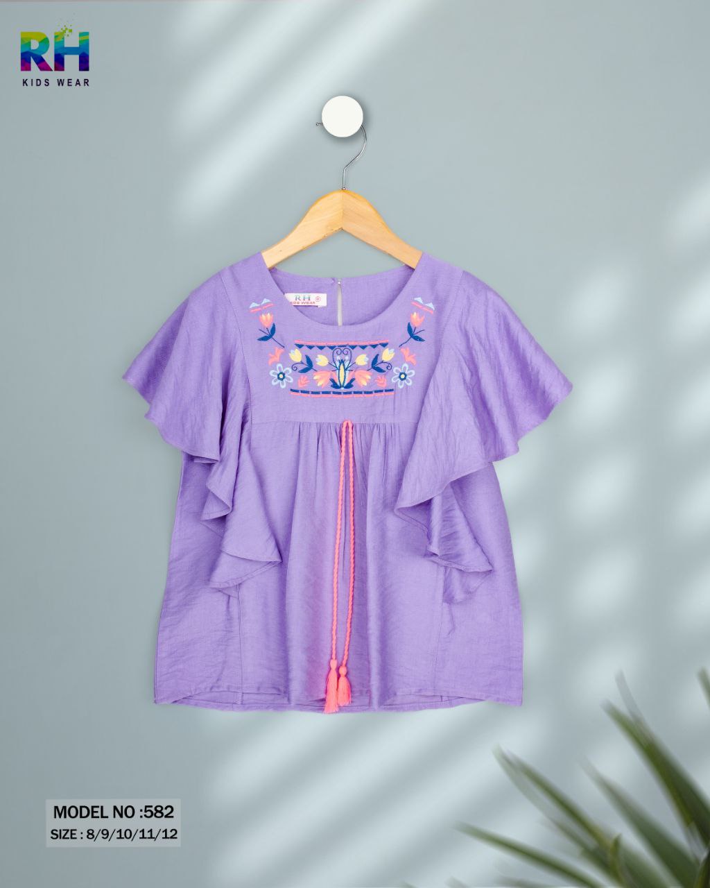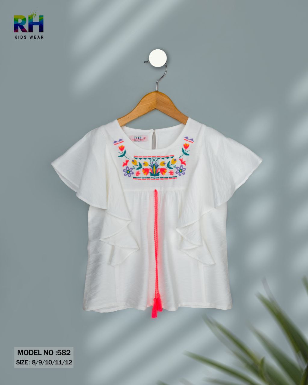 بلوزة بناتي أنيقة مع تصميم تطريز زهور مميز, مثالية للمناسبات الصيفية والنهارية. مصنوعة من قماش ناعم ومريح لتقديم تجربة ارتداء ممتازة.