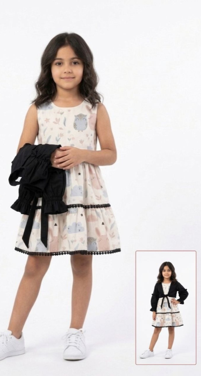 فستان بناتي يأتي بتصميم أنيق مع طبعات يونيكورن وقمر ونجوم، مصنوع من القطن المريح. مثالي للمناسبات الصيفية والطلعات اليومية.