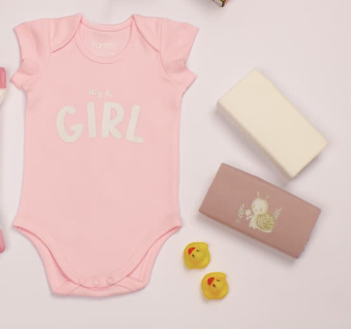 جمبسوت بناتي مصنوع من القطن الناعم مع عبارة 'it's a girl' مطبوعة. مثالي للأطفال من 3 أشهر إلى 24 شهر.
