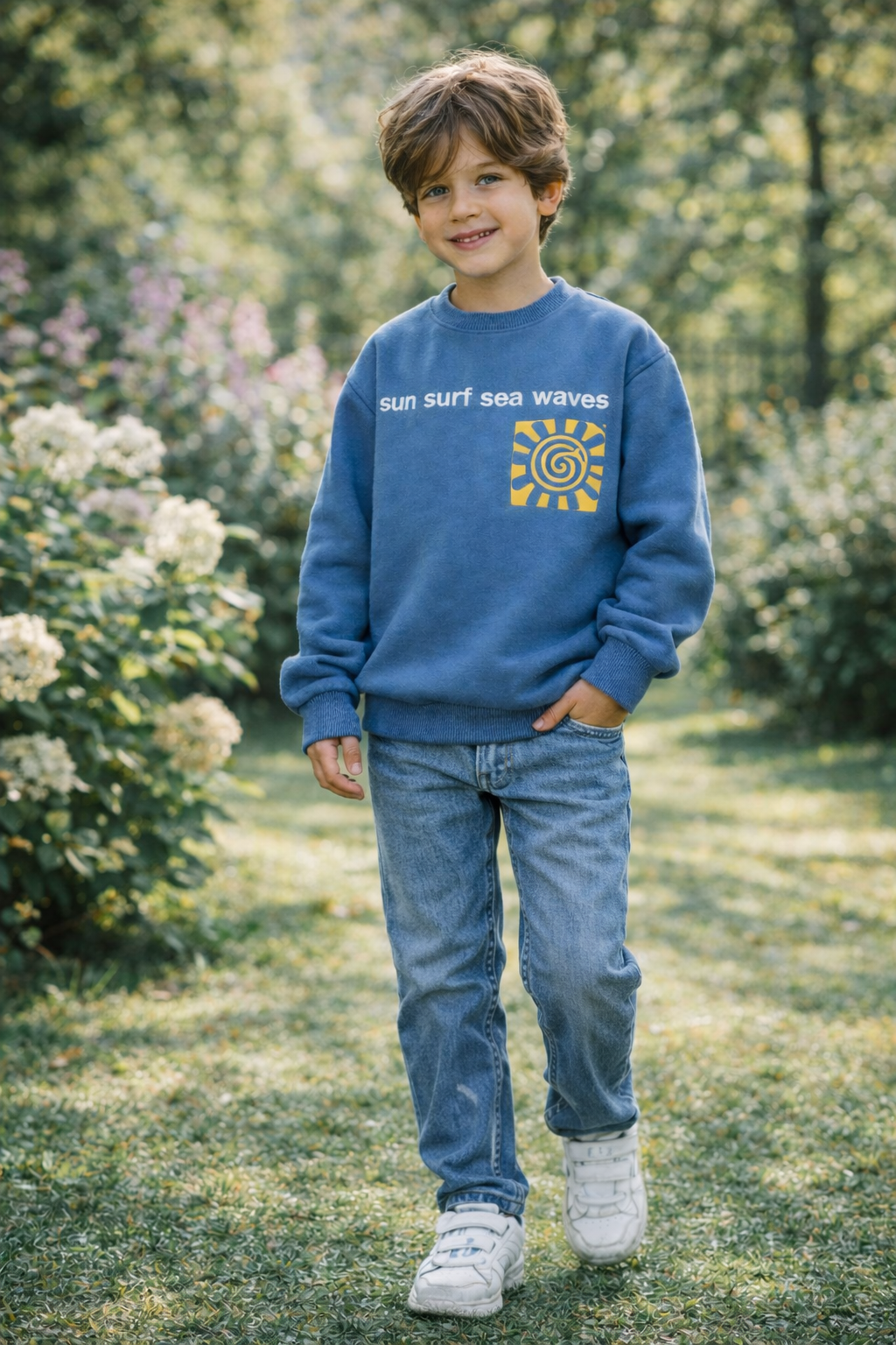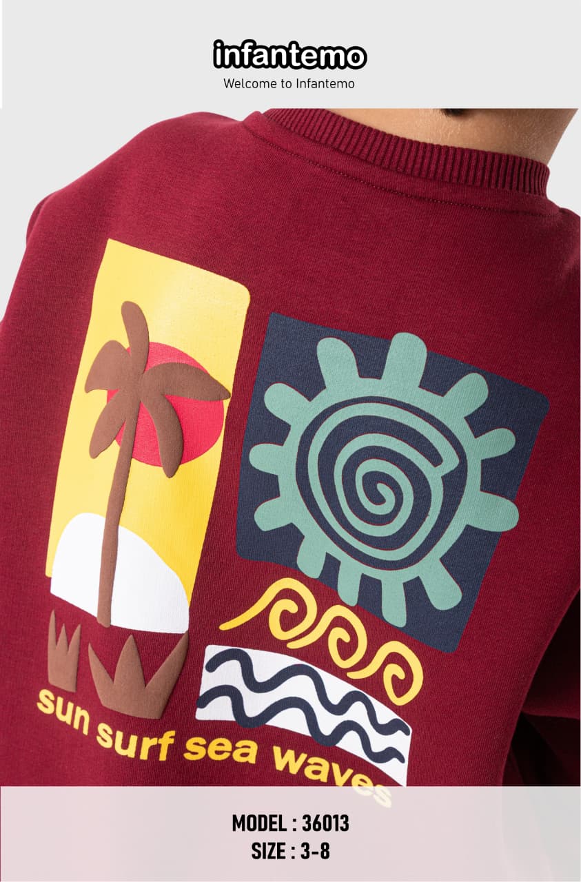 سويت شيرت ولادي أنيق ومريح بلون عنّابي مميّز، بتصميم مستوحى من أجواء الصيف والبحر.
