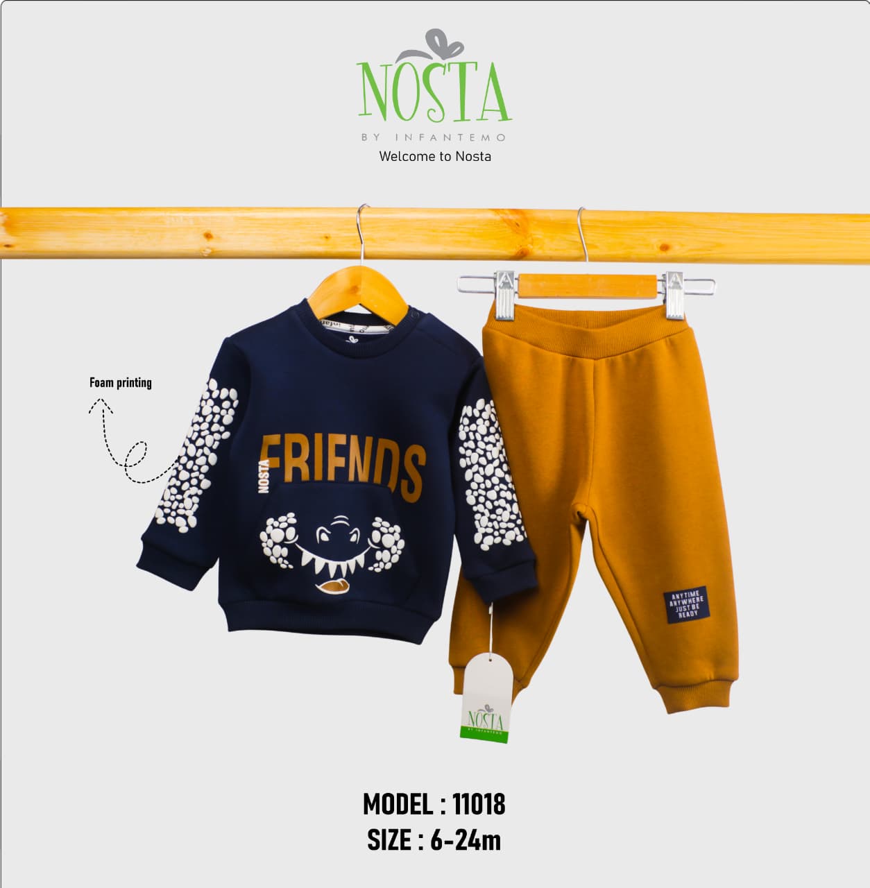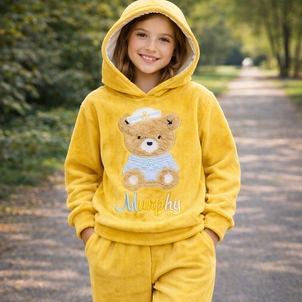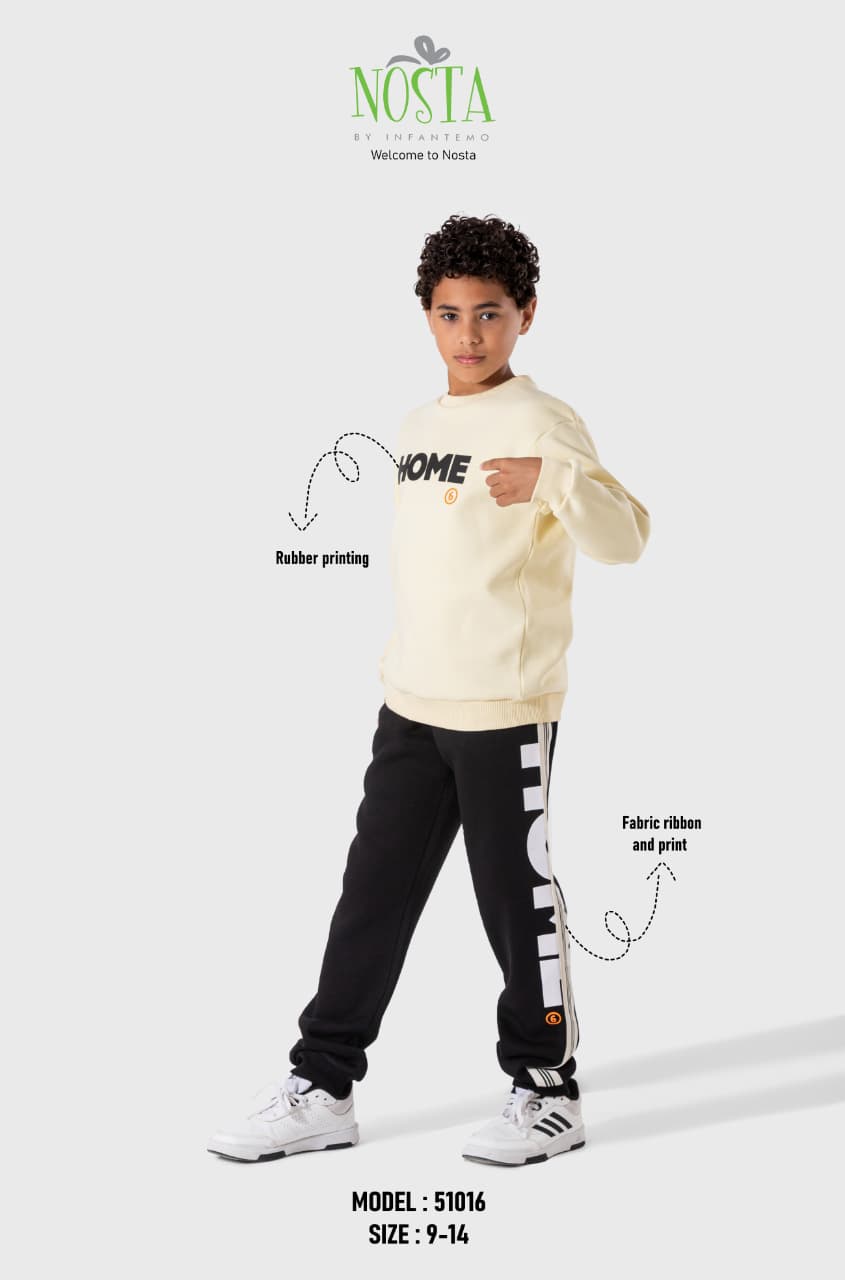 طقم شتوي شبابي رياضي أنيق، مناسب للنشاط اليومي واللعب. خامة دافئة وناعمة بتفاصيل مطبوعة على الظهر، وقصة عملية تحافظ على الراحة أثناء الحركة.