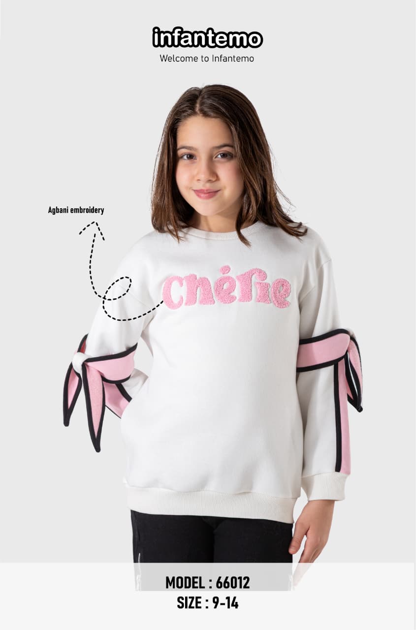 سويت-شيرت شتوي بناتي بتصميم فيونكات جانبية