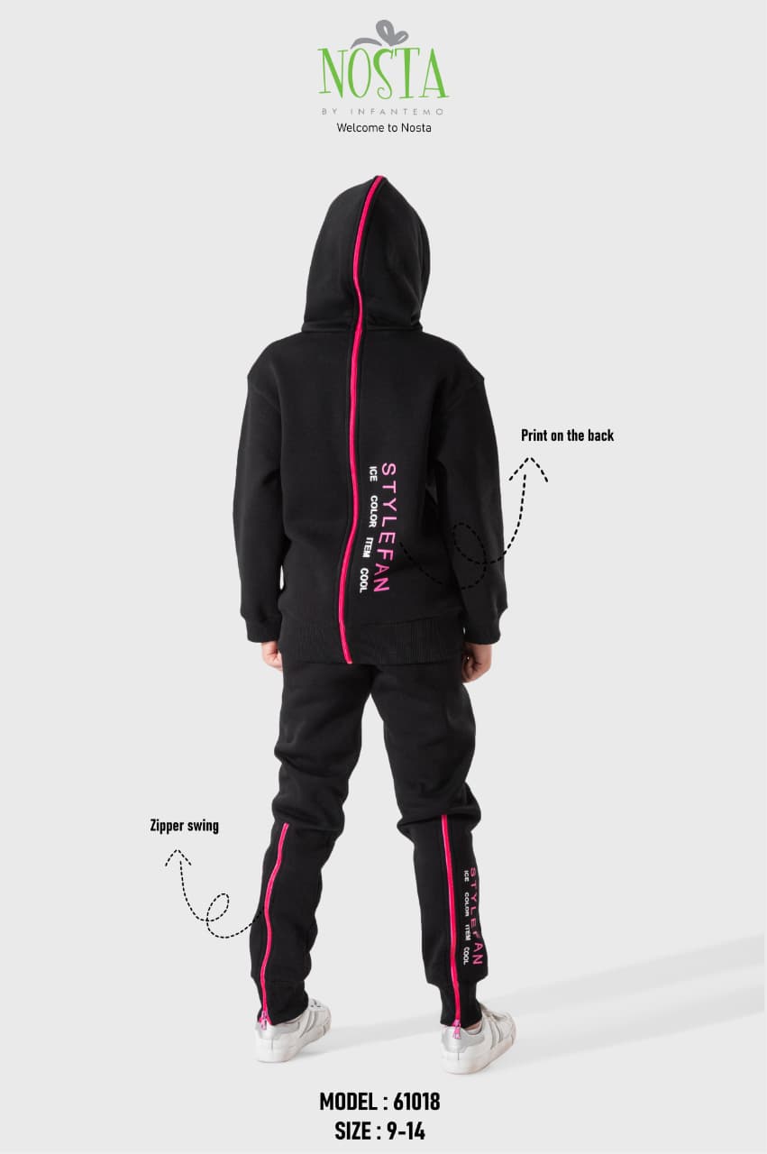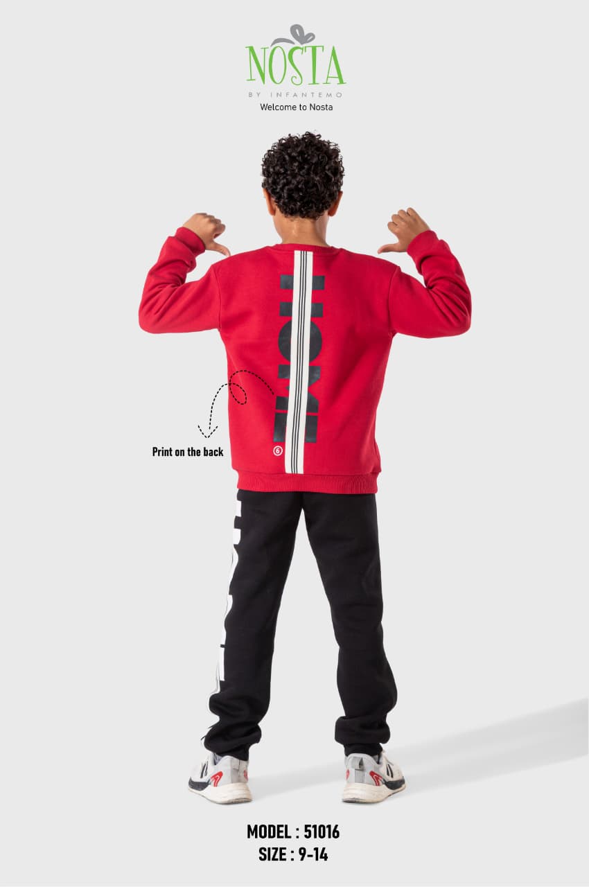 طقم شتوي عملي وأنيق للأطفال من 9 إلى 14 سنة، بتصميم رياضي حديث وطبعات عالية الجودة على الصدر والظهر. مناسب للحركة اليومية، المدرسة، أو الخروج مع الأصحاب.