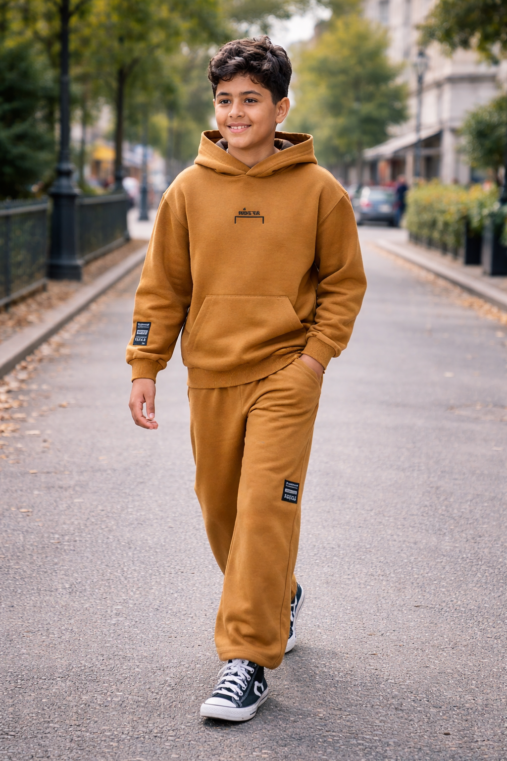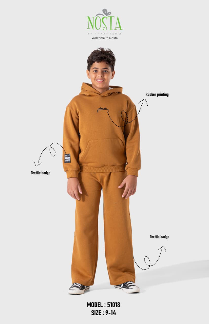 طقم شتوي عملي وأنيق للأولاد بعمر 9 إلى 14 سنة، مصنوع من قماش قطني ثقيل مناسب للأجواء الباردة، بتصميم مريح وواسع يمنح حرية حركة طوال اليوم، سواء للاستخدام اليومي أو الخروجات الكاجوال.