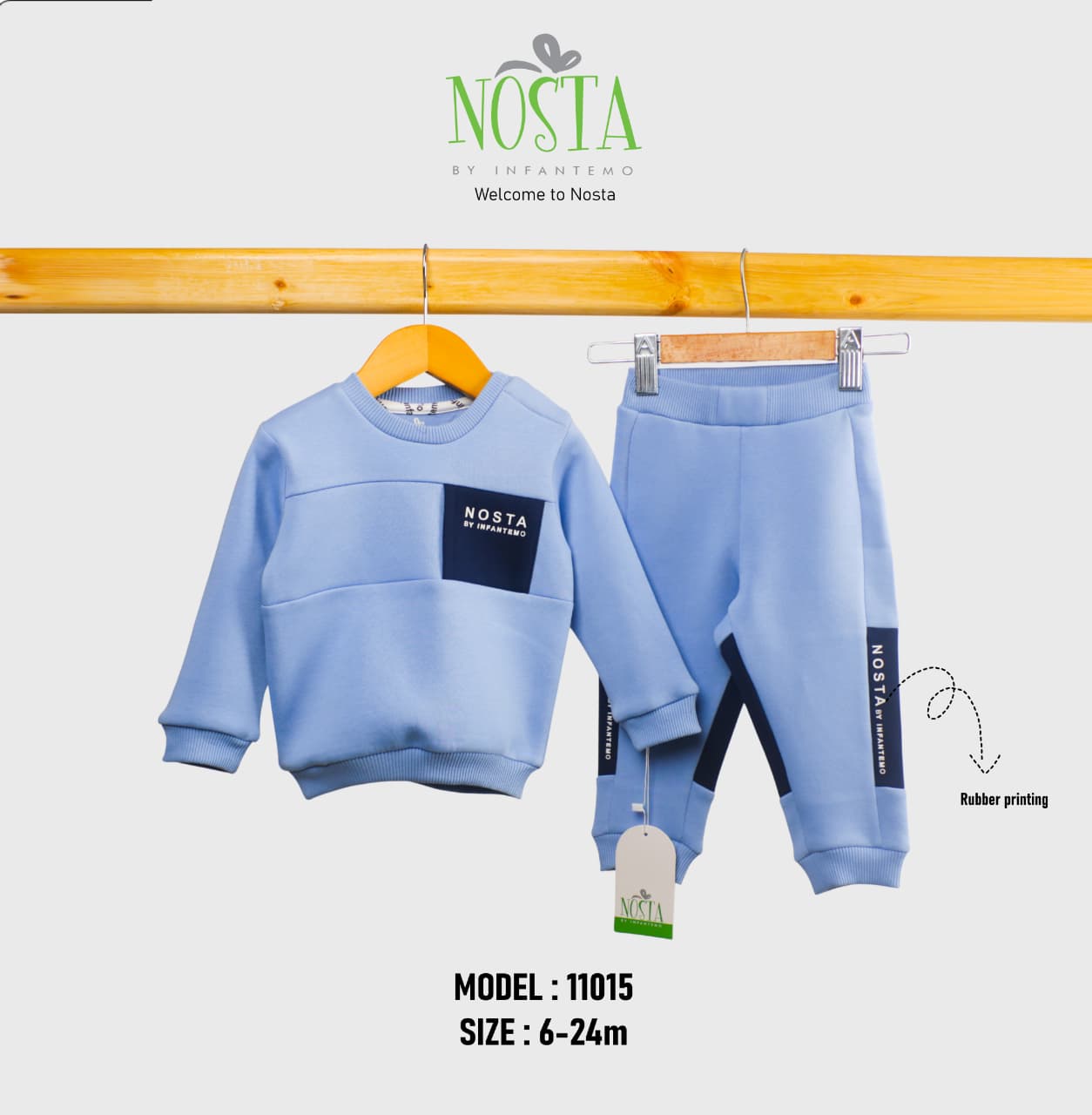 طقم شتوي أولادي قطعتين — سويت شيرت وبنطلون مطبوع (مطاطي)