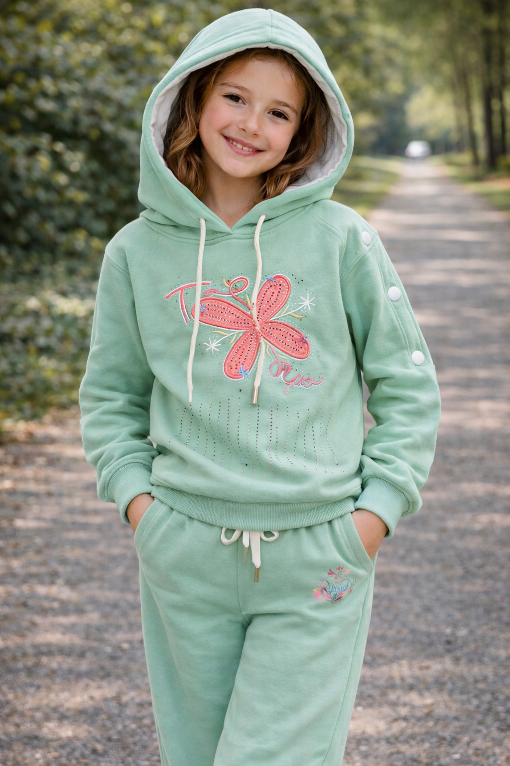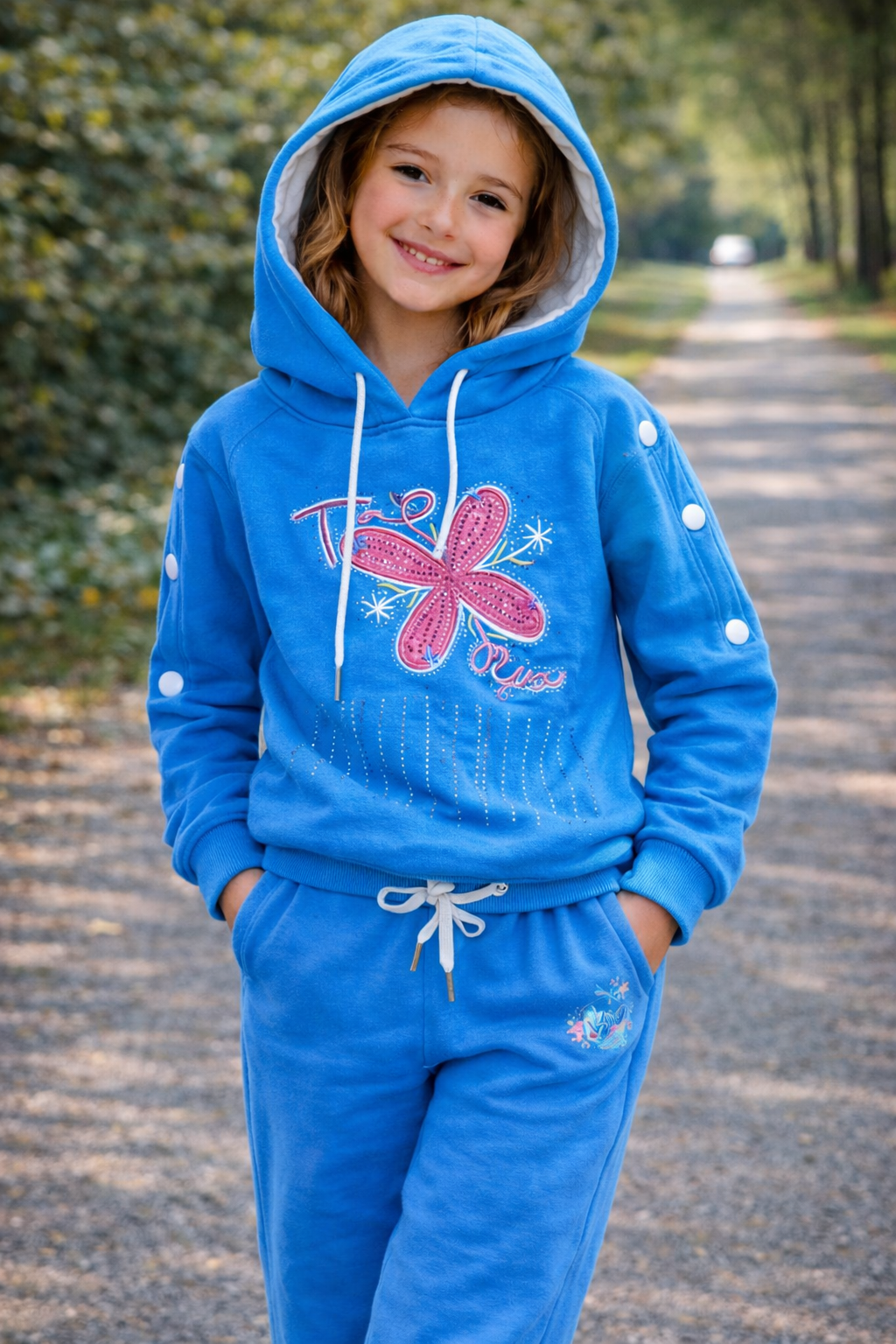 طقم رياضي شتوي بناتي قطعتين (هودي + بنطلون)، تصميم عصري ومريح مناسب للبنات لعمر 8 إلى 12 سنة.